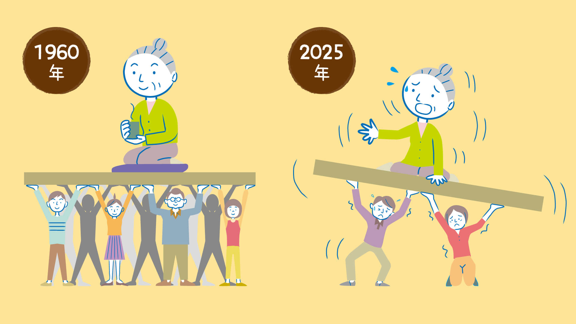 ニュースや新聞で目にすることが多い「超高齢社会」。日本では65歳以上のおじいちゃん、おばあちゃんがたくさん暮らしていますが、お年寄りが増え続けることにより年金や医療費など解決しなければいけない課題がたくさん生まれています。お年寄りだけではなくすべての人々が幸せな生活をおくる社会をつくるために、みんなにできることはなんでしょうか?