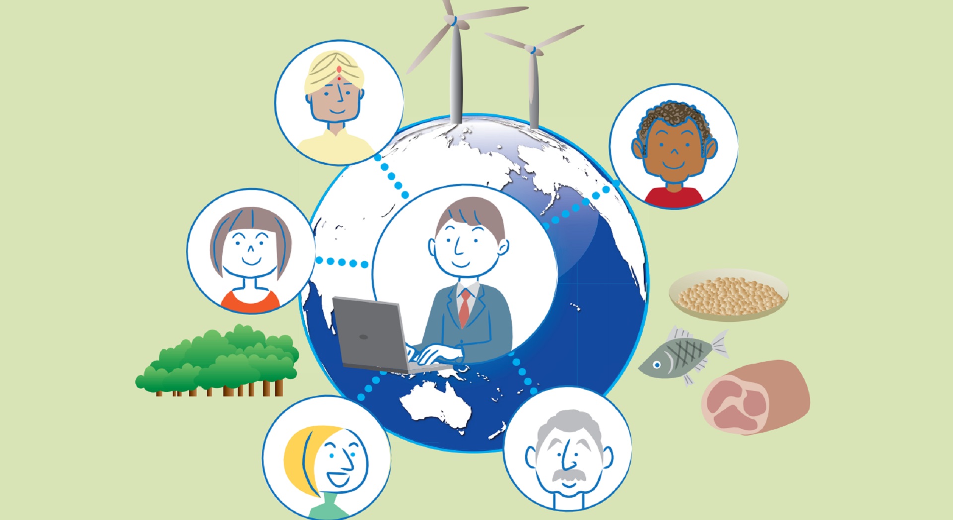 今後のビジネスでは、お金にかかわる経済とみんなが幸せにできる社会の豊かさを、将来にわたって継続して発展させる活動が必要になります。そこで大切なのは「自分や、自分の国さえよければそれでいい」という間違った考えをもたないこと。世界の課題となっている経済的な不平等や気候変動、エネルギー資源問題などを、自分にも関係ある地球規模で考えるべき課題として、これまで以上に世界中の企業や人々が協力・連携しながらかかわっていかなければなりません。そうすることで、世界中の人々がエネルギー・資源・食料を安定的に確保しながら、安心で安全な質の高い暮らしを実現することができます。地球上のグローバルな課題は、世界中の人々が協力して解決につなげる「新しい価値」をつくり出す時代なのです。