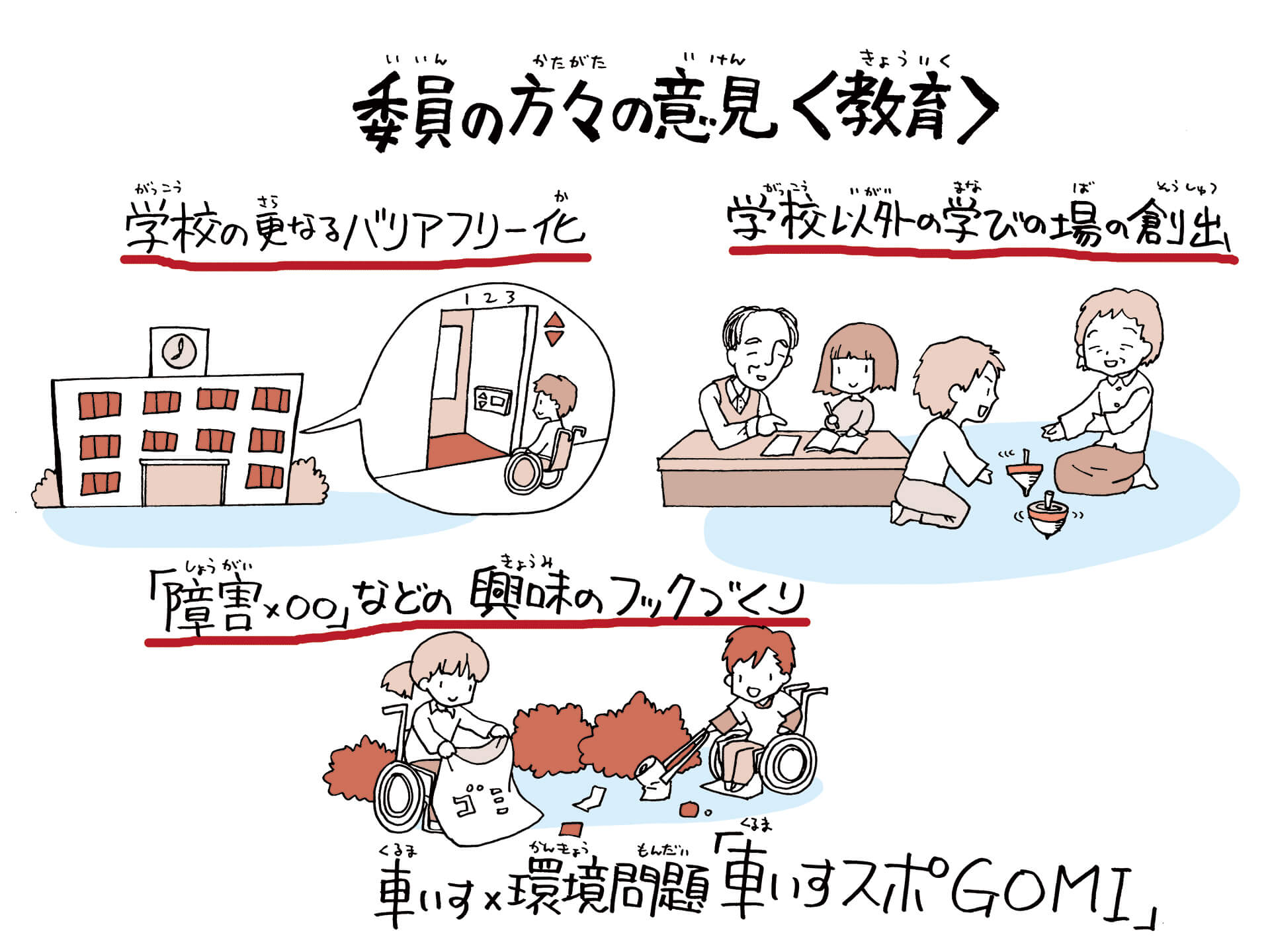 コロナ禍で「どうにか修学旅行をやろう」と全国の学校の方々が頑張ってくれているが、感染対策ができないためという理由で修学旅行に行けない車いすの子がいた。自分にも小さな頃から周囲に障害を持つ友達がいて、その子たちと接しながら「一緒に何ができるか」を考えていたからこそ、自分の想像力が膨らんだり行動力のきっかけになった。「できない」という理由で修学旅行に行けないのは本人だけでなく、周囲の子どもたちにとっても残念なことである。